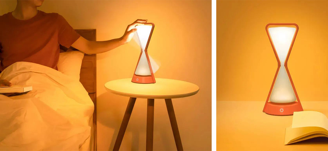 該款臺燈的外形設(shè)計參考傳統(tǒng)沙漏的形狀,當(dāng)旋轉(zhuǎn)臺燈的照明區(qū)域時,燈光打開,同時沙漏也開始計時。