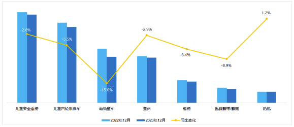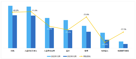 12月天貓平臺嬰童用品主要品類銷售額及同比