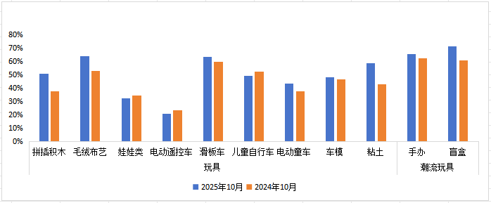 ▲10月天貓平臺(tái)玩具&潮流玩具銷售額及同比情況
